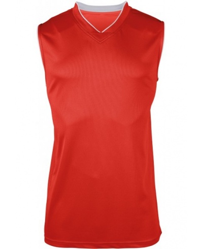 100% Polyester. Schnelltrocknend. V-Ausschnitt. Paspeln in Kontrastfarbe an Hals- und Armausschnitt. Doppelnaht an Hüfte.