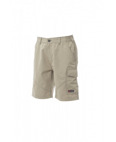 Herren Bermudashorts, seitliche Gummi- und Hüftgurtschlaufen, Reißverschluss mit Kunststoffknopf, zwei klassische Fronttaschen, eine Seitentasche mit LOCK SYSTEM, eine Maßbandtasche, zwei Gesäßtaschen, eine mit Klappe und eine mit Klettverschluss, Kontrasteinsätze und Nähte, reflektierende Streifen auf der Gesäßtasche, dreifache Nähte