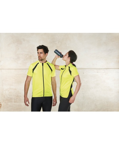 100% Polyester. Schnelltrocknend. Reißverschluß. 3 Rückentaschen mit Einteilungen + 1 kleine Tasche mit Reißverschluß. Elastische Hüfte mit Anti-Rutsch Silikonband. Reflektierende Paspeln vorne und hinten.