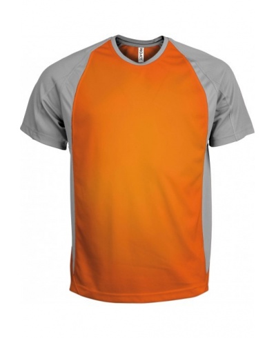 100% Polyester. Sehr leicht und schnelltrocknend. Raglanärmel in Kontrastfarbe. Stoffüberlappungen an Ärmeln und Abschlüssen. Doppelnahtverarbeitung am unteren Ende, an den Ärmeln sowie am Halsausschnitt.