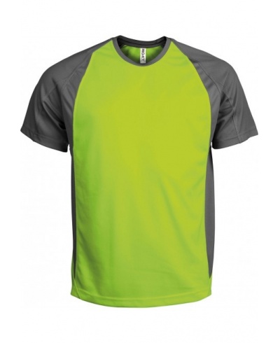 100% Polyester. Sehr leicht und schnelltrocknend. Raglanärmel in Kontrastfarbe. Stoffüberlappungen an Ärmeln und Abschlüssen. Doppelnahtverarbeitung am unteren Ende, an den Ärmeln sowie am Halsausschnitt.