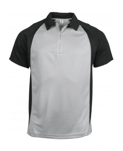 100% Polyester. Ultraleicht und schnelltrocknend. Polokragen mit Nylon-Reißverschluß und Paspeln. Raglanärmel in Kontrastfarbe. Stoffüberlappungen an Ärmeln. Doppelnahtverarbeitung am unteren Ende, an den Ärmeln, am Halsausschnitt.