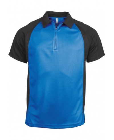 100% Polyester. Ultraleicht und schnelltrocknend. Polokragen mit Nylon-Reißverschluß und Paspeln. Raglanärmel in Kontrastfarbe. Stoffüberlappungen an Ärmeln. Doppelnahtverarbeitung am unteren Ende, an den Ärmeln, am Halsausschnitt.