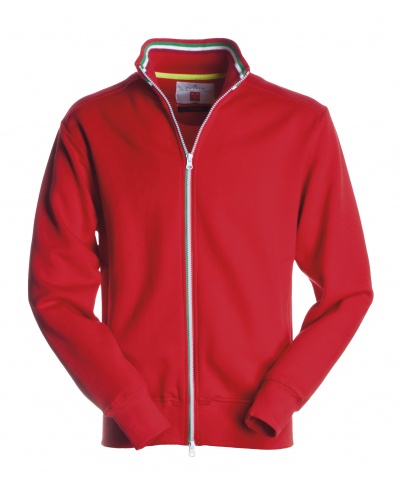 Herren Sweatshirt mit komplettem, kontrastierendem, dreifarbigem SBS-Kunststoffreißverschluss mit Doppel-Metall-Zug, Rippkragen mit kontrastierendem Rand, eng anliegende Ärmel, zwei Außentaschen, Stretch-Rippbündchen und -saum, verstärkte Nähte