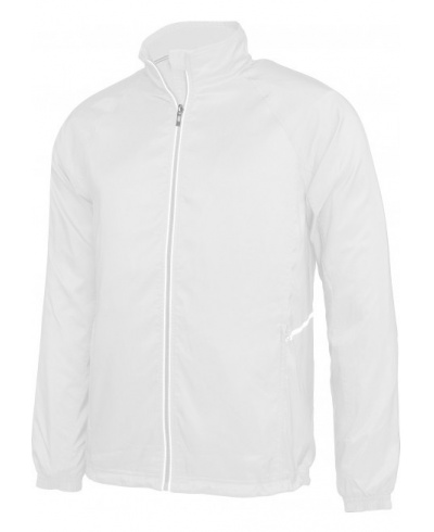100% Diamant-Polyester. Schnelltrocknendes Netzfutter. Reißverschluß mit reflektierender Paspel. 2 Fronttaschen mit Reißverschluß. 1 Innentasche. Elastisch am Handgelenk. Bund mit Kordelzug und Stopper. Reflektierendes Band seitlich. Reißverschluß für leichtes Veredeln.