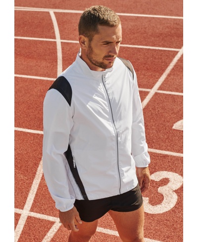 100% Polyester Mikrofaser. 2 Fronttaschen mit Reißverschluß. Netz Einsätze an Schulter und Seiten mit schweißabführender Funktion. Reflektierende Streifen an der Seite und am Front Reißverschluß. Kleine Tasche auf dem Ärmel.