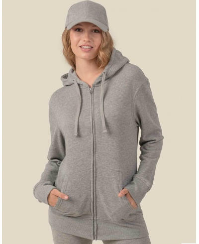 Damen Kapuzenpullover mit durchgehendem Reißverschluss und Kängurutasche aus French Terry.