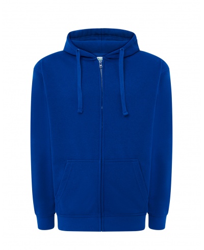 Hooded Herren Sweatshirt, 1/1 Reißer innen gebürstet. Reißer und Kordeln in passender Farbe. Känguru Taschen. Doppelte Nähte an 1/1 Rib Bündchen und 1/1 Rib Bund, alle mit Lycra verstärkt.