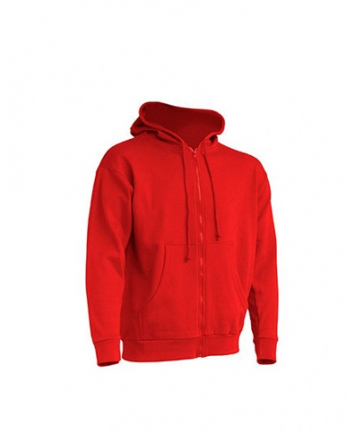 Hooded Herren Sweatshirt, 1/1 Reißer innen gebürstet. Reißer und Kordeln in passender Farbe. Känguru Taschen. Doppelte Nähte an 1/1 Rib Bündchen und 1/1 Rib Bund, alle mit Lycra verstärkt.