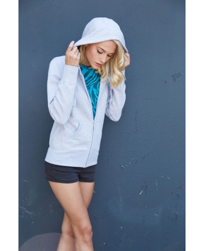 80% gekämmte Baumwolle / 20% Polyester. Gebürstetes Fleece. Kontrastfarbenes Nackenband am Kragen (Navy bei Farbton Oxford Grey und Oxford Grey bei allen anderen Farbtönen). Kapuze mit Futter mit Waffelmuster. Kängurutaschen. Strickbündchen an Ärmeln und Saum. YKK®-Reißverschluß.