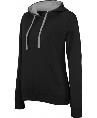 80% gekämmte Baumwolle / 20% Polyester. Gebürstetes Fleece. Kopfhörer-Kängurutasche und Kragen mit Kopfhörerkabel-Durchzug. Strickbündchen an Ärmeln und Saum. Gefütterte Kapuze inwendig und Kordelzug in Kontrastfarbe.
