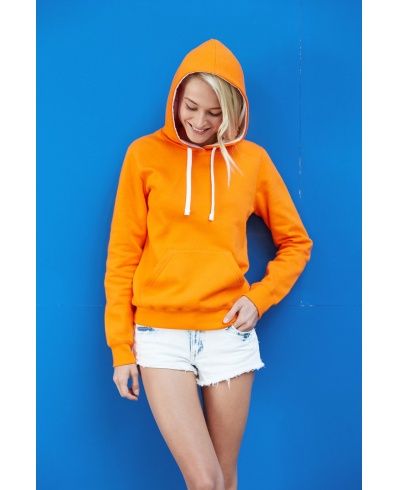 80% gekämmte Baumwolle / 20% Polyester. Gebürstetes Fleece. Kopfhörer-Kängurutasche und Kragen mit Kopfhörerkabel-Durchzug. Strickbündchen an Ärmeln und Saum. Gefütterte Kapuze inwendig und Kordelzug in Kontrastfarbe.