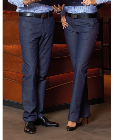 Diese Hose aus strapazierfähigem Jeansgewebe gibt Ihrem Outfit im Beruf einen topmodischen Look. Dunkle Waschung mit braunen Nähten und Nieten. Gummieinsätze im Bund sorgen für perfekten Tragekomfort. Mentana Man hat seitliche Eingrifftaschen, zwei Gesäßtaschen und Gürtelschlaufen. Pflegeleicht, farbecht, industriewäsche- und finishertauglich.