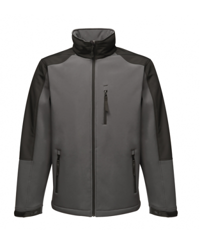 gewebtes Softshell XPT mit warmer Rückseite, wasserdichtes und atmungsaktives 3-Lagen-Membrangewebe, strukturierte Ripstop-Schultereinsätze, windabweisendes Membrangewebe, Polyester-Mesh-Futter, dauerhaft wasserabweisendes ATL-Finish, innerer Reißverschlussschutz, faltbare, umwickelte, gefütterte Kapuze mit Versteller, verstellbare Ärmelbündchen mit Gummilaschen, 2 RV-Unter- und 1 Brusttasche, interne Sicherheitstasche, innere Handytasche, verstellbarer Shockcord-Saum
