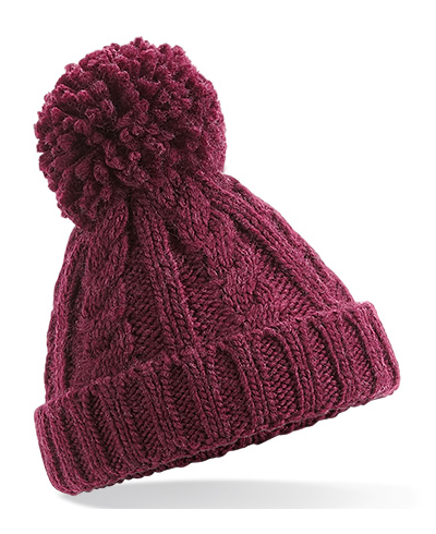 Tear-away Label für einfaches Neulabeln, Schwerer Kabelstrick in Melange, Handgestricktes Griffgefühl, Einfarbige Bommel, Atmungsaktive und komfortable Baumwoll-Jersey-Fütterung, Aufschlagdesign zur optimalen Verzierung
