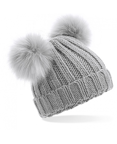 Baby-Beanie mit doppeltem Pom Pom aus Kunstpelz