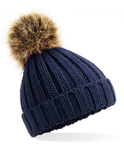 Chunky Beanie aus Kunstpelz mit Pop-Pom