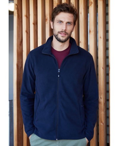 100 % Polyester-Microfleece. Reißverschluß und 2 Reißverschlußtaschen vorne.