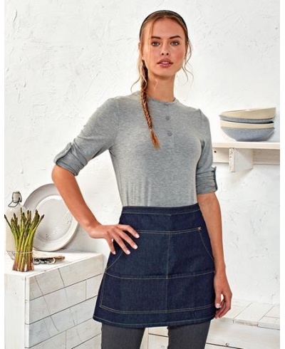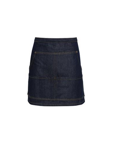 Diese Taillenschürze vereint Funktionalität mit Stil und verfügt über kontrastierende Nähte, die vier Vordertaschen bilden, die praktisch zum Tragen von Zahlungsterminals und Bestellblöcken sind. Krawatten aus gleichem Stoff sind lang genug, um sie zu verdoppeln und an der Vorderseite zu binden, um dem Servicepersonal eine ordentliche und professionelle Uniform zu verleihen.