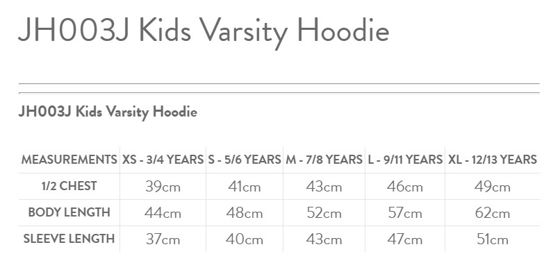 JH003J Kids Varsity Hoodie