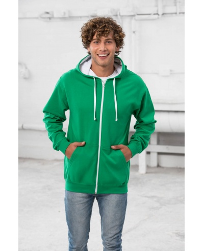 Durchgehender Reißverschluss Hoodie mit Kontrast Kunststoff Reißverschluss