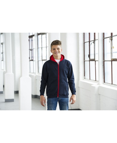 Durchgehender Reißverschluss Hoodie mit Kontrast Kunststoff Reißverschluss