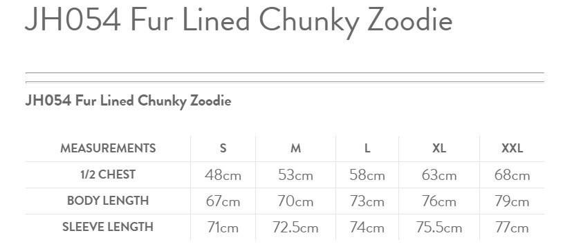 JH054 Fur Lined Chunky Zoodie
