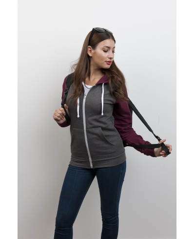 Rechtse Seitentasche hat kleine versteckte Öffnung für Kopfhörerkabel-Feed