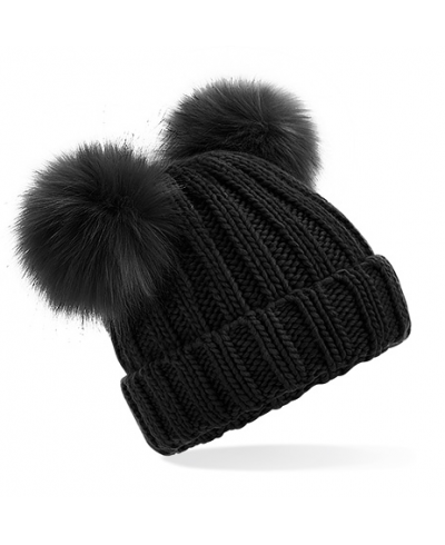 Junior Beanie mit doppeltem Pom Pom aus Kunstpelz