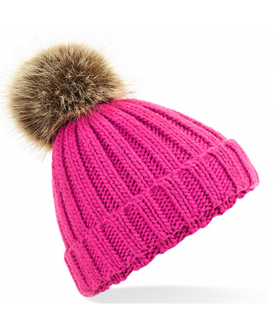 TearAway-Label für einfaches Rebranding, üppiger schwerer Rippstrick, luxuriöser Kunstpelz-Bommel,