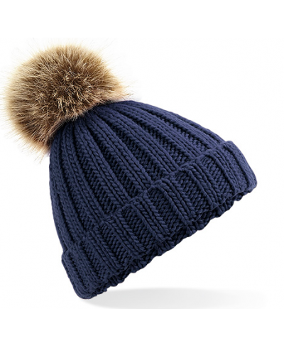 TearAway-Label für einfaches Rebranding, üppiger schwerer Rippstrick, luxuriöser Kunstpelz-Bommel,