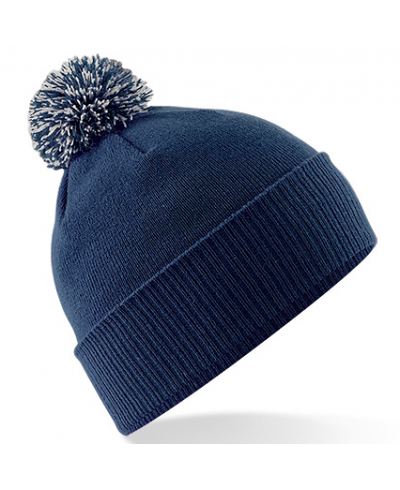 Doppelfunktion - mit Umschlag als Mütze oder ohne Umschlag als Slouch-Beanie, Doppellagiger Strick, Geripptes Bündchen, Bommel in Zwei-Ton-Optik