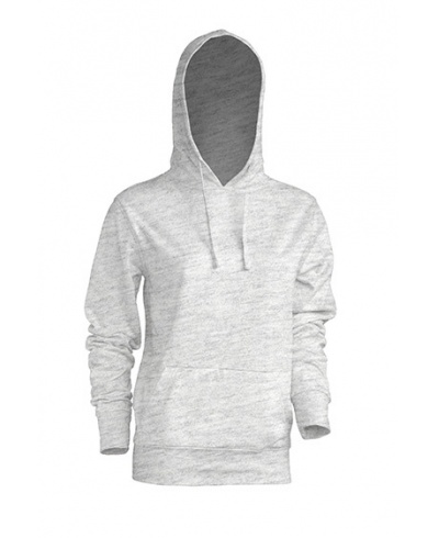 Damen Hoody mit Känguruh Taschen. Kapuzenkordel in passender Farbe. 1x1 Ribstrickbündchen an Armen und Body.