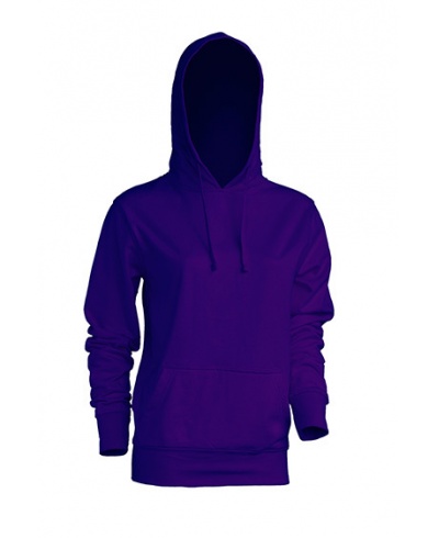 Damen Hoody mit Känguruh Taschen. Kapuzenkordel in passender Farbe. 1x1 Ribstrickbündchen an Armen und Body.