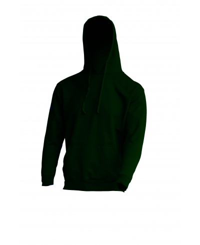Hooded Sweatshirt, innen gebürstet. Kordeln in passender Farbe. Känguru Taschen. Doppelte Nähte an 1/1 Rib Bündchen und 1/1 Rib Bund, alle mit Lycra verstärkt.