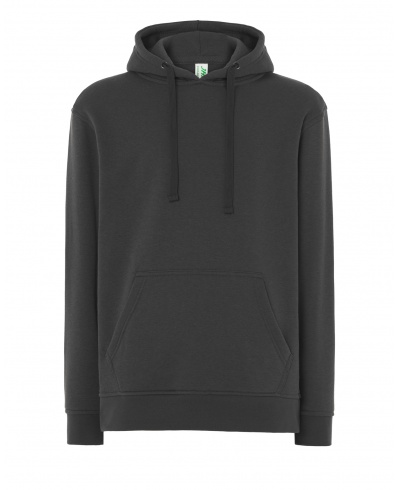 Hooded Sweatshirt, innen gebürstet. Kordeln in passender Farbe. Känguru Taschen. Doppelte Nähte an 1/1 Rib Bündchen und 1/1 Rib Bund, alle mit Lycra verstärkt.