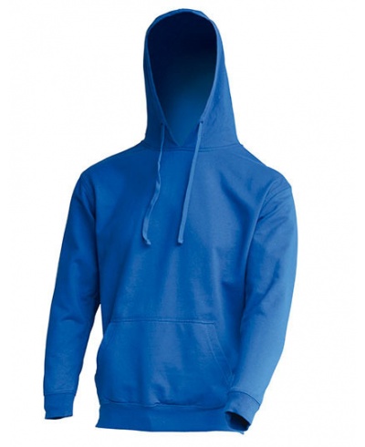 Hooded Sweatshirt, innen gebürstet. Kordeln in passender Farbe. Känguru Taschen. Doppelte Nähte an 1/1 Rib Bündchen und 1/1 Rib Bund, alle mit Lycra verstärkt.