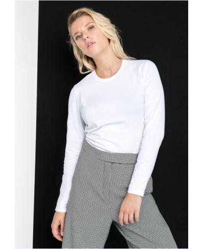 95% Baumwolle / 5% Elasthan. Taillierter Schnitt. Eingefaßter Kragen und Nackenband. Doppelnahtverarbeitung an Ärmeln und Bund.