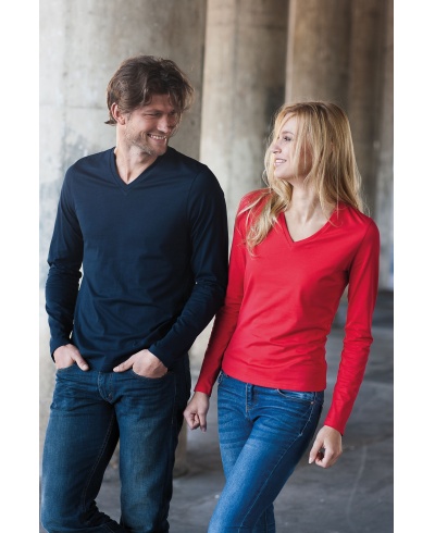 100% gekämmte Baumwolle, Enzymwäsche veredelt (Oxford Grey: 90 % Baumwolle/10 % Viskose). Feminin tailliert. Nackenband (Oxford Grey bei farbigen Shirts, White bei weißen Shirts, Dark Grey bei Shirts in Oxford Grey). Doppelnähte an Ärmeln und Saum.