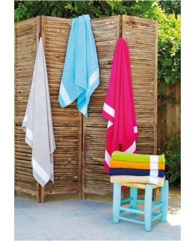 100% Baumwollvelours. 100 x 160 cm, mit breitem weißem Streifen an beiden Enden.