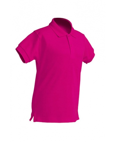 Kinder Unisex Polo-Piquee Shirt, kurzer Arm, verstärkte Seitenschlitze. Doppelte Nähte an Kragen, Ärmeln und Bund, 2 Knöpfe. Lycra im Ribkragen und Armbündchen, Nackentape Schulter zu Schulter.