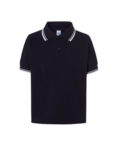 Kinder Unisex Polo-Piquee Shirt, kurzer Arm, verstärkte Seitenschlitze. Doppelte Nähte an Kragen, Ärmeln und Bund, 2 Knöpfe. Lycra im Ribkragen und Armbündchen, Nackentape Schulter zu Schulter.