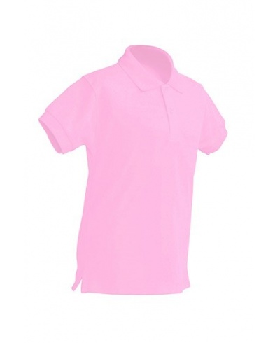 Kinder Unisex Polo-Piquee Shirt, kurzer Arm, verstärkte Seitenschlitze. Doppelte Nähte an Kragen, Ärmeln und Bund, 2 Knöpfe. Lycra im Ribkragen und Armbündchen, Nackentape Schulter zu Schulter.