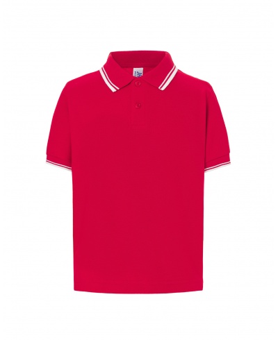 Kinder Unisex Polo-Piquee Shirt, kurzer Arm, verstärkte Seitenschlitze. Doppelte Nähte an Kragen, Ärmeln und Bund, 2 Knöpfe. Lycra im Ribkragen und Armbündchen, Nackentape Schulter zu Schulter.