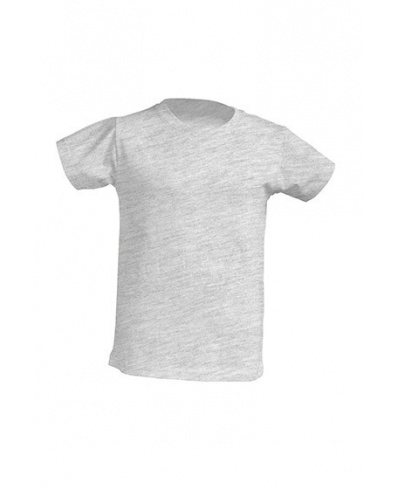 Kinder Premium T-Shirt, kurzer Arm, Seitennähte. Doppelte Nähte an Kragen, Ärmeln und Bund. Lycra im Ribkragen, Nackentape Schulter zu Schulter. Ash Melange: 98% Baumwolle / 2% Polyester.