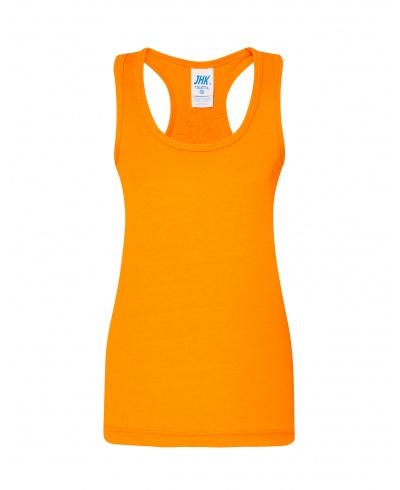 Girly Tank Top T-Shirt mit Rückenausschnitt im Schwimmer Design. Gerippter Abschluss 1x1. Schulter mit geripptem Abschluss 2x1. Schwimmdesign und rückwärtige Falte