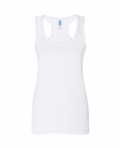Girly Tank Top T-Shirt mit Rückenausschnitt im Schwimmer Design. Gerippter Abschluss 1x1. Schulter mit geripptem Abschluss 2x1. Schwimmdesign und rückwärtige Falte
