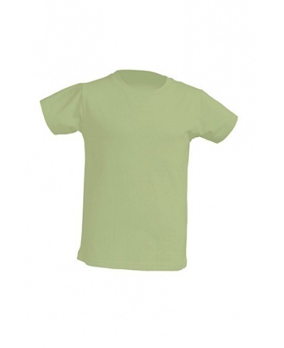 Kinder T-Shirt, kurzer Arm, Seitennähte. Doppelte Nähte an Kragen, Ärmeln und Bund. Lycra im Ribkragen, Nackentape Schulter zu Schulter. Grey Melange: 85% Baumwolle / 15% Polyester.