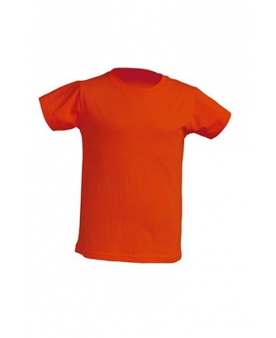 Kinder T-Shirt, kurzer Arm, Seitennähte. Doppelte Nähte an Kragen, Ärmeln und Bund. Lycra im Ribkragen, Nackentape Schulter zu Schulter. Grey Melange: 85% Baumwolle / 15% Polyester.