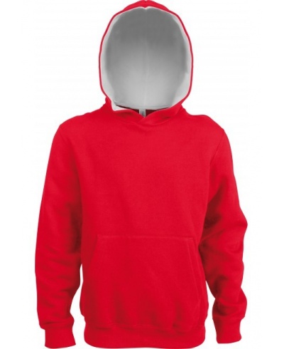 80% gekämmte Baumwolle / 20% Polyester. Gebürstetes Fleece. Kängurutasche und Kragen mit Kopfhörerkabel-Durchzug. Ärmel und Bund gerippt. Gefütterte Kapuze in Kontrastfarbe innen.